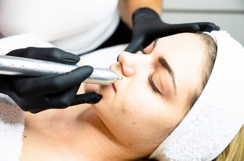 Phi Ion Pen ist ein extrem minimal-invasives kosmetische Behandlung für genau fokussierten Sublimation der Hautoberfläche. Es basiert sich auf der Übertragung einer kontrollierten Energiemenge durch Ionisieren der atmosphärischen Luft. Durch diesen Vorgang werden die Hautfasern sofort zusammengezogen und gestrafft, um einen Lifting-, Remodeling- und Verjüngungseffekt zu erzielen. Diese Methode kann verwendet werden, um bestimmte Bereiche zu straffen, ohne das darunterliegende oder angrenzende Gewebe zu schädigen. Das Phi-Ion-Behandlung bietet eine tiefe Korrektur für hängende Augenlider. Es kann verwendet werden, um Kniefalten zu glätten, Falten zu imitieren, Aknenarben zu verbessern und Hautflecken zu entfernen.